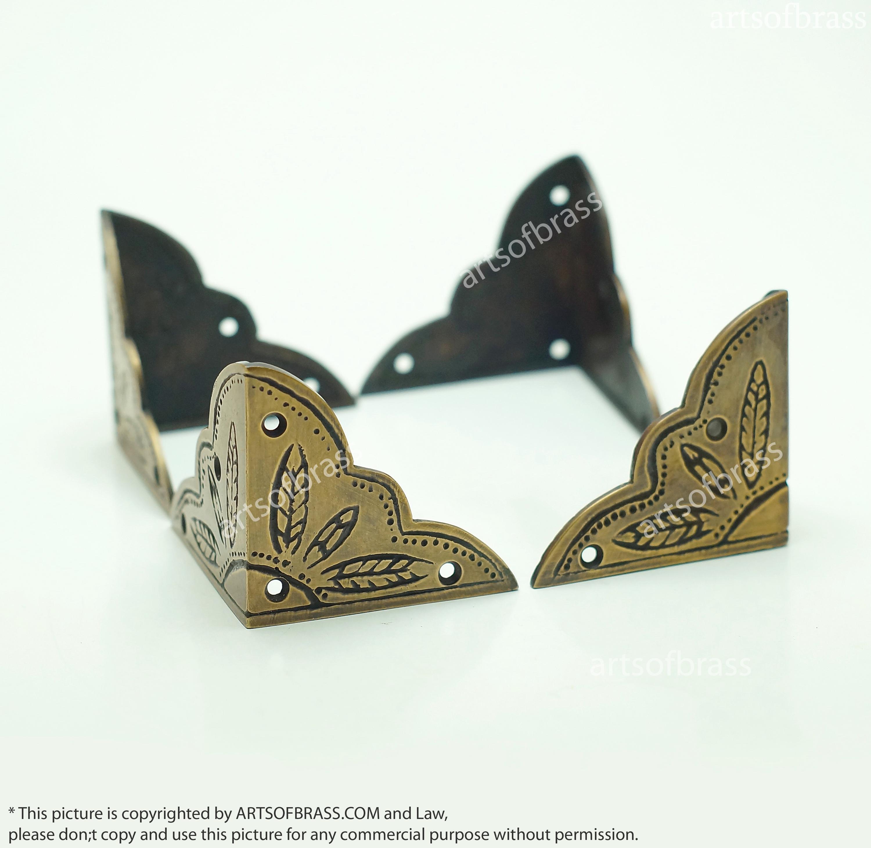 This listing for 2.40" inches lot of 4 pcs Victorian Engraved Table Box Cabinet Trunk Corner Protector Solid Brass Corner Protector T028.