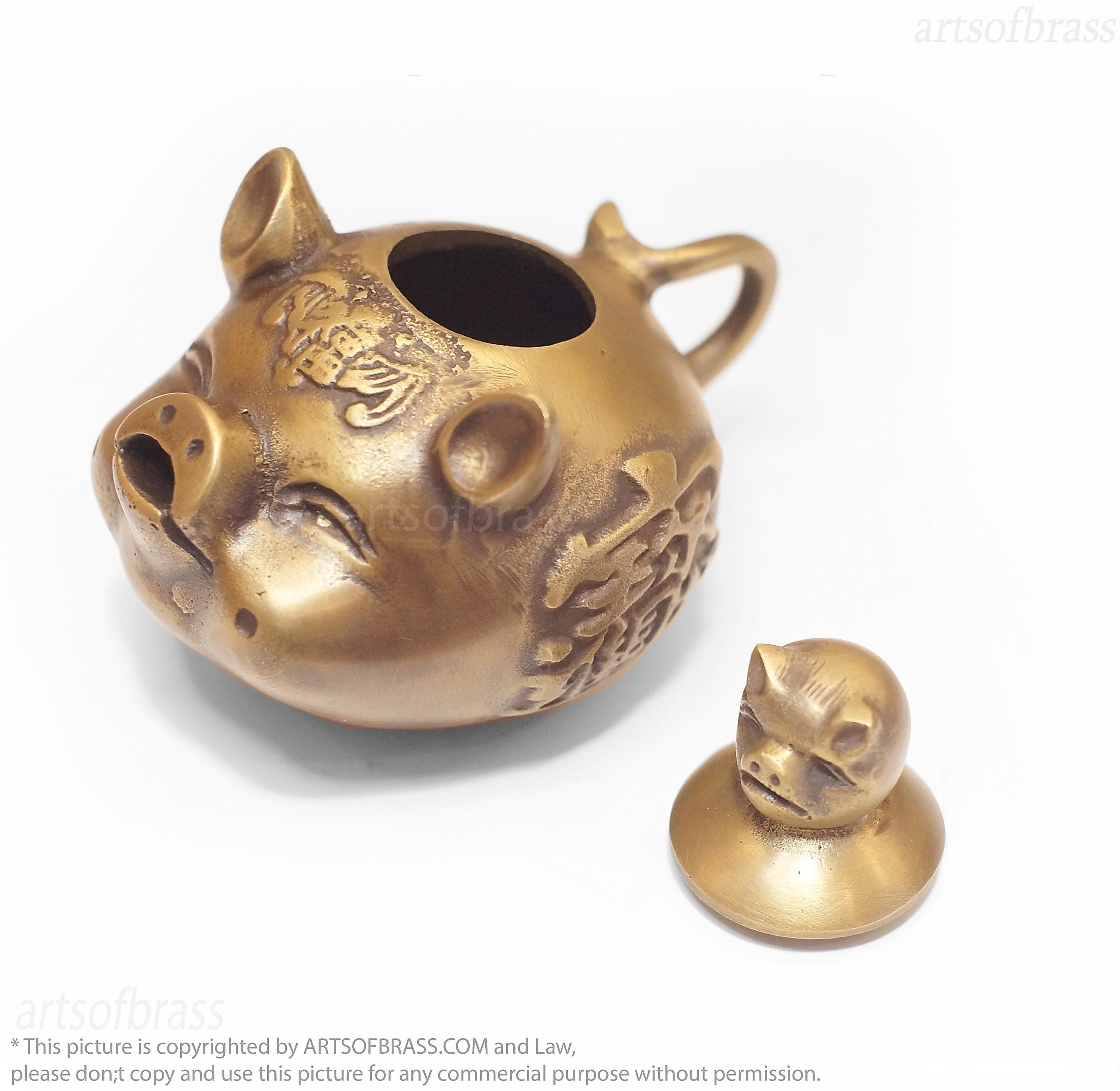 This solid brass piglet teapot decor is a refined decorative accent designed for collectors and lovers of distinctive home decor. With its playful yet elegant piglet form, this collectible figurine brings warmth, character, and personality to any interior.