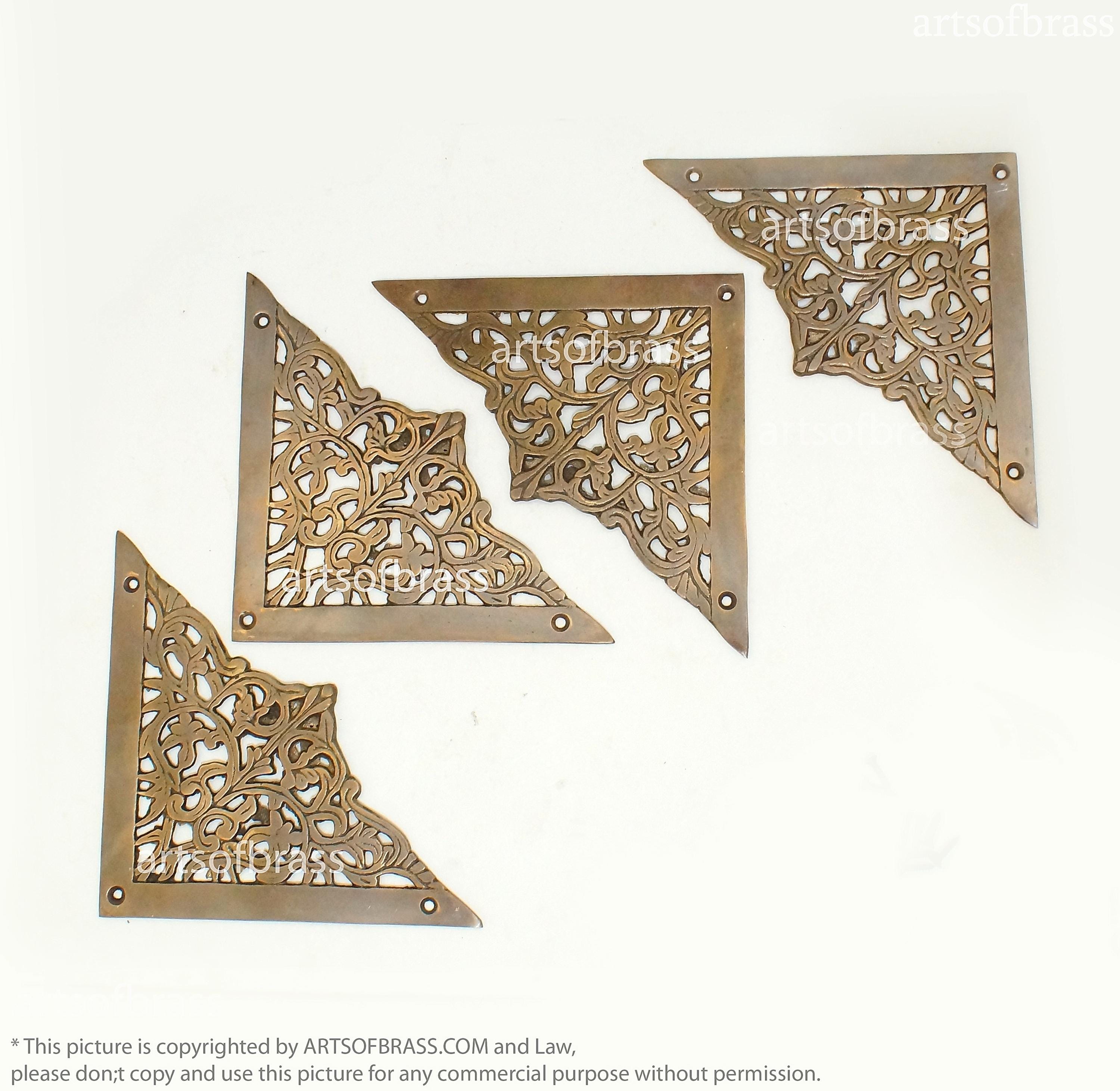 Lot of 8 Side Vintage Decorative Antique Solid Brass Ornate Corner Table Box Protector Guard YSW-C.